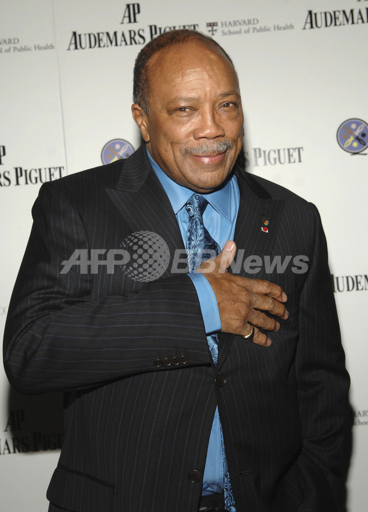【ニューヨーク/米国 25日 AFP】音楽プロデューサーのクインシー・ジョーンズ(Quincy Jones)とハーバード大学公衆衛生大学院(Harvard School of Public Health)が設立した貧困、虐待などで苦しむ子供たちを救うため国際的な支援活動に取り組む人に贈られる賞「Q Prize Awards」の授賞式が24日、コア・クラブ(Core Club)で開催され、多くの著名人が出席した。同授賞式では、R&B歌手のマリオ(Mario)やジョン・レジェンド(John Legend)によるパフォーマンスが披露された。写真は同授賞式に出席するクインシー・ジョーンズ。(c)AFP/Getty Images Brad Barket