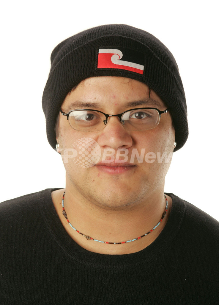 写真は同フォトコールでポーズをとる脚本と監督を務めたSterlin Harjo。(c)AFP/Getty Images Mark Mainz