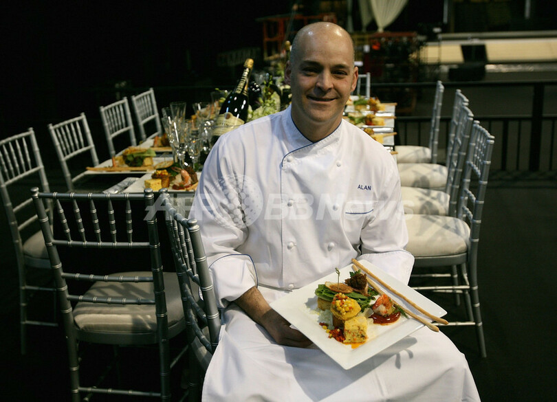 【バーバンク/米国 26日 AFP】授賞式を間近に控えた映画俳優協会賞(Screen Actors Guild Awards、通称:SAG賞)の準備裏側に迫るツアーが25日、シュライン・エキシビション・センター(Shrine Exposition Center)で開催された。主演男優賞にレオナルド・ディカプリオ(Leonardo Dicaprio)、フォレスト・ウィテカー(Forest Whitaker)、主演女優賞にペネロペ・クルス(Penelope Cruz)、メリル・ストリープ(Meryl Streep)らがノミネートされている今回の同賞の授賞式は、28日に同センターにて行われる。写真は式典の料理を担当するシェフ、アラン・ジャクソンさん(Alan Jackson)。(c)AFP/Getty Images Michael Buckner