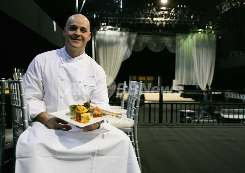 【バーバンク/米国 26日 AFP】授賞式を間近に控えた映画俳優協会賞(Screen Actors Guild Awards、通称:SAG賞)の準備裏側に迫るツアーが25日、シュライン・エキシビション・センター(Shrine Exposition Center)で開催された。主演男優賞にレオナルド・ディカプリオ(Leonardo Dicaprio)、フォレスト・ウィテカー(Forest Whitaker)、主演女優賞にペネロペ・クルス(Penelope Cruz)、メリル・ストリープ(Meryl Streep)らがノミネートされている今回の同賞の授賞式は、28日に同センターにて行われる。写真は式典の料理を担当するシェフ、アラン・ジャクソンさん(Alan Jackson)。(c)AFP/Getty Images Michael Buckner