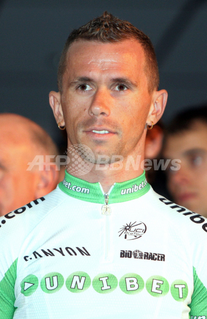 【ゲント/ベルギー 25日 AFP】自転車ロードレースチームのユニベット(Unibet.com)は、ベルギーのゲントで2007シーズンのチーム発表会を開催した。ユニベットは、バーデン・クック(Baden Cooke、オーストラリア)を始めビクトルウーゴ・ペニャ(Victor Hugo Pena、コロンビア)、ホセ・ルハノ(Jose Rujano、ベネズエラ)、ジミー・カスペール(Jimmy Casper、フランス)、マッテオ・カッラーラ(Matteo Carrara、イタリア)を中心に2007シーズンに挑む。(c)AFP/LIEVEN VAN ASSCHE