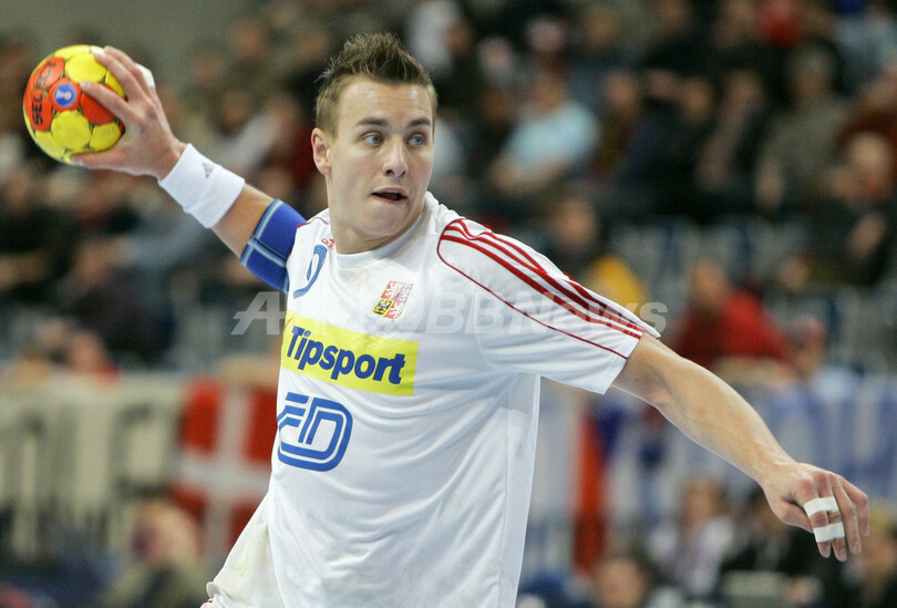 【マンハイム/ドイツ 25日 AFP】ハンドボール、男子ハンドボール世界選手権2007(Men’s Handball World Championship)、決勝ラウンド・グループ2、チェコvsロシア。ロシアのEduard Koksharovは、9得点を挙げ勝利に貢献した。試合は、ロシアが30-26でチェコを降し、決勝ラウンド初勝利を挙げた。写真は、得点を挙げ喜ぶKoksharov。(c)AFP/JACQUES DEMARTHON