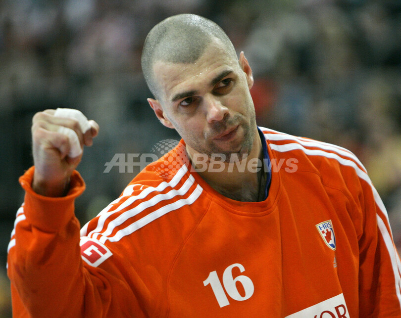 【マンハイム/ドイツ 25日 AFP】ハンドボール、男子ハンドボール世界選手権2007(Men’s Handball World Championship)、決勝ラウンド・グループ2、クロアチアvsハンガリー。クロアチアのGK、Dragan Jerkovicは35本中17本のシュートをセーブしチームの勝利に貢献した。試合はクロアチアが25-18で勝利し、決勝ラウンド2連勝を飾った。(c)AFP/JACQUES DEMARTHON