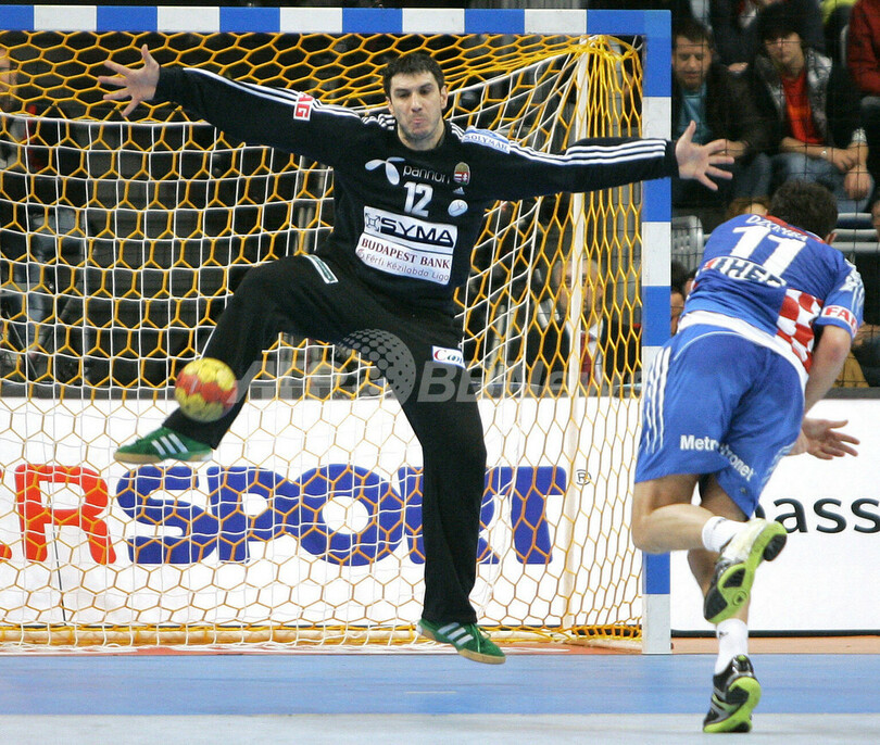 【マンハイム/ドイツ 25日 AFP】ハンドボール、男子ハンドボール世界選手権2007(Men’s Handball World Championship)、決勝ラウンド・グループ2、クロアチアvsハンガリー。クロアチアのGK、Dragan Jerkovicは35本中17本のシュートをセーブしチームの勝利に貢献した。試合はクロアチアが25-18で勝利し、決勝ラウンド2連勝を飾った。(c)AFP/JACQUES DEMARTHON