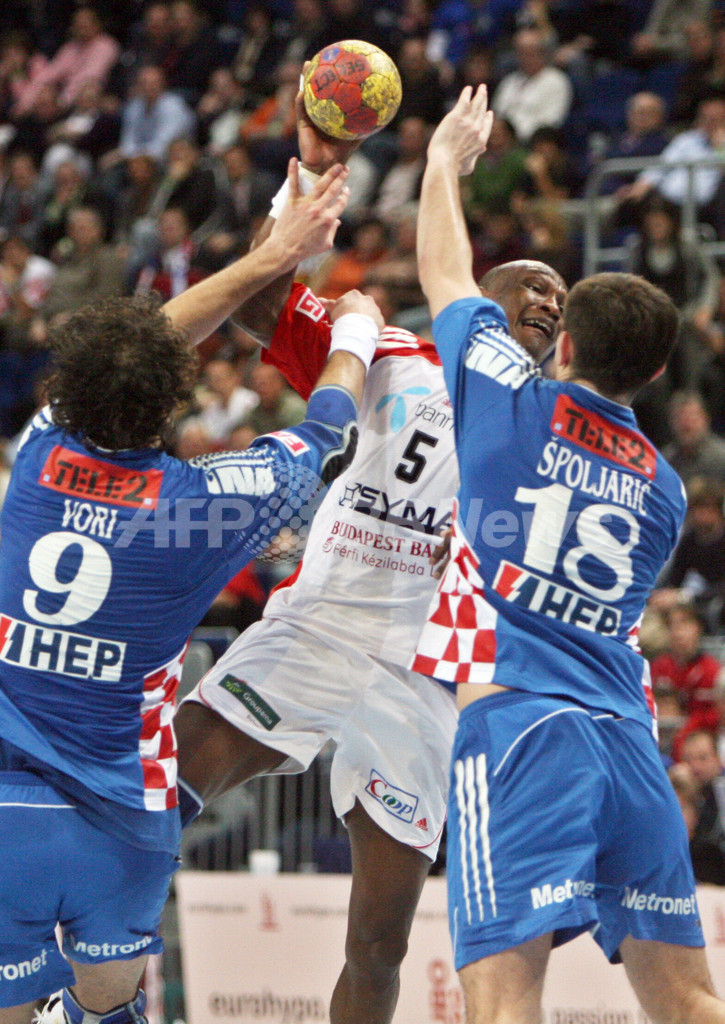 【マンハイム/ドイツ 25日 AFP】ハンドボール、男子ハンドボール世界選手権2007(Men’s Handball World Championship)、決勝ラウンド・グループ2、クロアチアvsハンガリー。クロアチアのGK、Dragan Jerkovicは35本中17本のシュートをセーブしチームの勝利に貢献した。試合はクロアチアが25-18で勝利し、決勝ラウンド2連勝を飾った。(c)AFP/JACQUES DEMARTHON