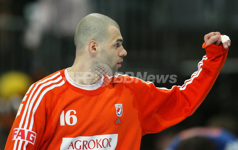 【マンハイム/ドイツ 25日 AFP】ハンドボール、男子ハンドボール世界選手権2007(Men’s Handball World Championship)、決勝ラウンド・グループ2、クロアチアvsハンガリー。クロアチアのGK、Dragan Jerkovicは35本中17本のシュートをセーブしチームの勝利に貢献した。試合はクロアチアが25-18で勝利し、決勝ラウンド2連勝を飾った。(c)AFP/JACQUES DEMARTHON