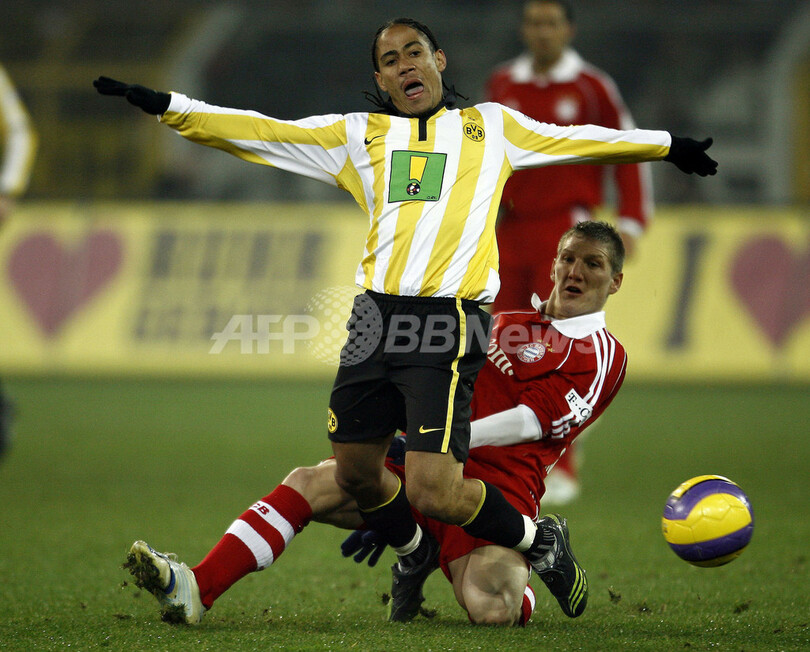 【ドルトムント/ドイツ 26日 AFP】サッカー、ドイツ・ブンデスリーガ・第18節、ボルシア・ドルトムント(Borussia Dortmund)vsバイエルン・ミュンヘン(Bayern Munich)。ドルトムントのアレクサンデル・フレイ(Alexander Frei)は、2得点(前半12分、後半12分)を挙げる活躍をみせチームの勝利に貢献した。試合は3-2でドルトムントが勝利し今シーズン6勝目を挙げた。写真は、ゴールを挙げて歓喜するフレイ。(c)AFP/DDP TORSTEN SILZ