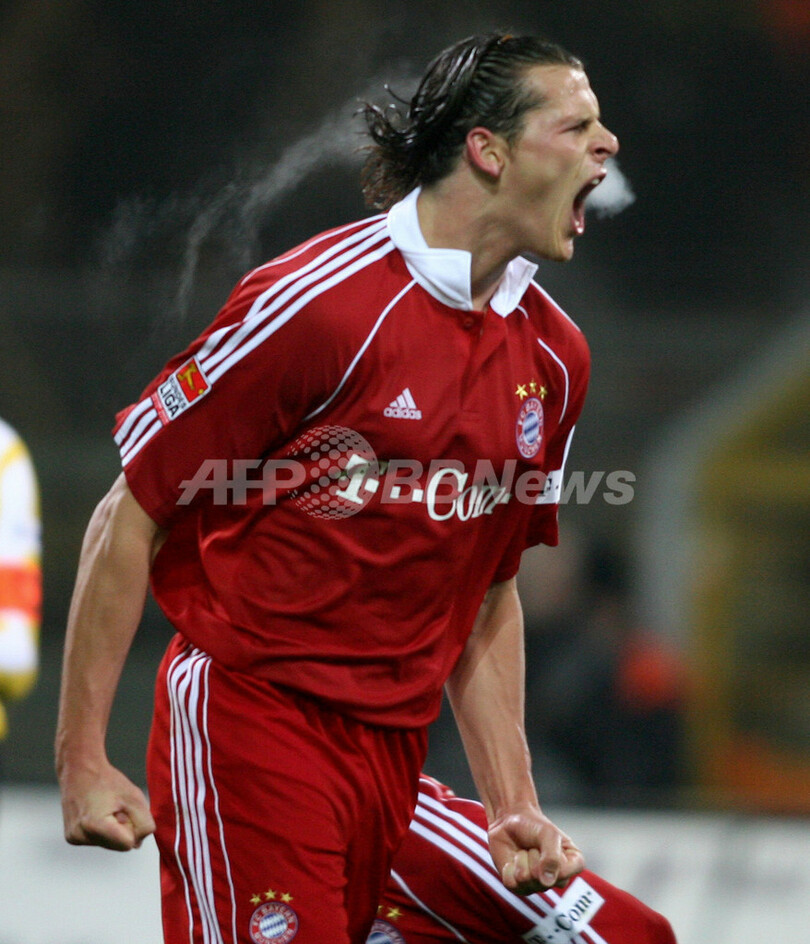 【ドルトムント/ドイツ 26日 AFP】サッカー、ドイツ・ブンデスリーガ・第18節、ボルシア・ドルトムント(Borussia Dortmund)vsバイエルン・ミュンヘン(Bayern Munich)。ドルトムントのアレクサンデル・フレイ(Alexander Frei)は、2得点(前半12分、後半12分)を挙げる活躍をみせチームの勝利に貢献した。試合は3-2でドルトムントが勝利し今シーズン6勝目を挙げた。写真は、ゴールを挙げて歓喜するフレイ。(c)AFP/DDP TORSTEN SILZ
