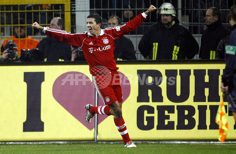 【ドルトムント/ドイツ 26日 AFP】サッカー、ドイツ・ブンデスリーガ・第18節、ボルシア・ドルトムント(Borussia Dortmund)vsバイエルン・ミュンヘン(Bayern Munich)。ドルトムントのアレクサンデル・フレイ(Alexander Frei)は、2得点(前半12分、後半12分)を挙げる活躍をみせチームの勝利に貢献した。試合は3-2でドルトムントが勝利し今シーズン6勝目を挙げた。写真は、ゴールを挙げて歓喜するフレイ。(c)AFP/DDP TORSTEN SILZ