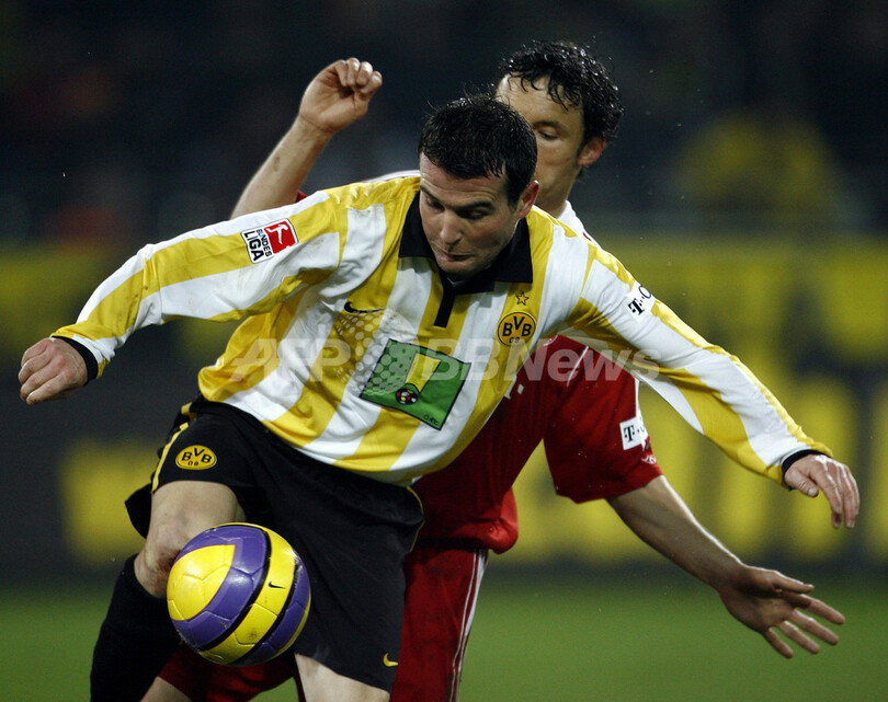 【ドルトムント/ドイツ 26日 AFP】サッカー、ドイツ・ブンデスリーガ・第18節、ボルシア・ドルトムント(Borussia Dortmund)vsバイエルン・ミュンヘン(Bayern Munich)。ドルトムントのアレクサンデル・フレイ(Alexander Frei)は、2得点(前半12分、後半12分)を挙げる活躍をみせチームの勝利に貢献した。試合は3-2でドルトムントが勝利し今シーズン6勝目を挙げた。写真は、ゴールを挙げて歓喜するフレイ。(c)AFP/DDP TORSTEN SILZ
