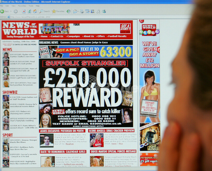 写真は、ニューズ・オブ・ザ・ワールド紙のホームページ画面。(c)AFP/ALESSANDRO ABBONIZIO