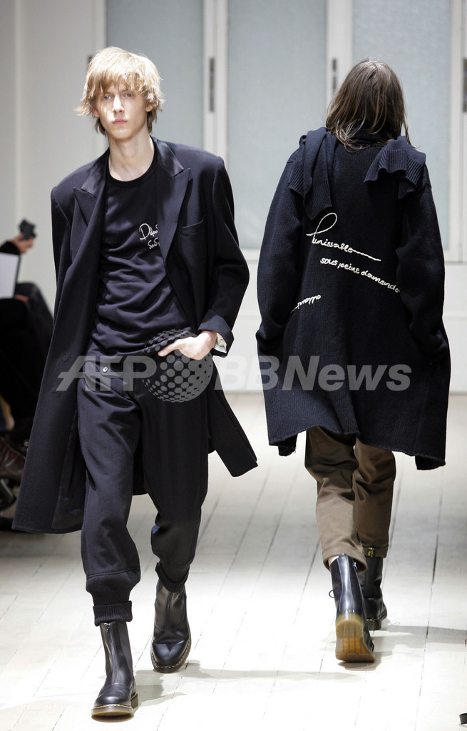 【パリ/フランス 27日 AFP】1月26日から5日間、フランス・パリ市内にて07/08年秋冬メンズコレクションが開かれている。初日の26日に、ヨウジヤマモト(Yohji Yamamoto)のショーが行なわれた。写真は、新作を披露するモデル。(c)AFP/FRANCOIS GUILLOT