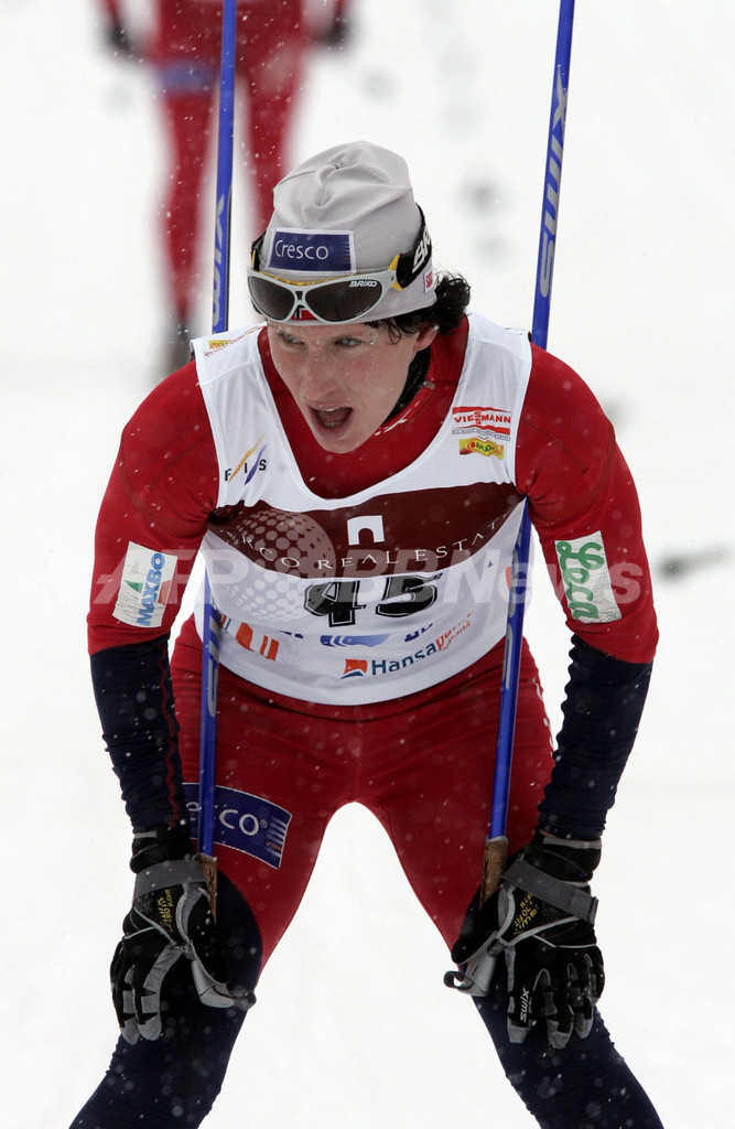 【オテパ/エストニア 27日 AFP】クロスカントリーW杯(FIS WORLD CUP CROSS-COUNTRY 2006/07)・第12戦、女子10キロメートル・個人クラシカル。ポーランドのユスチナ・コワルチク(Justyna Kowalczyk)は、トップタイムとなる30分54秒2をマークして今季初勝利を挙げた。(c)AFP/RAIGO PAJULA