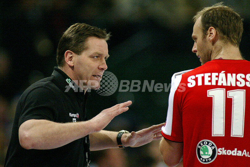 【ハレ/ドイツ 27日 AFP】ハンドボール、男子ハンドボール世界選手権2007(Men’s Handball World Championship)、決勝ラウンド・グループ1、アイスランドvsスロベニア。試合はアイスランドが33-31でスロベニアを降し、決勝ラウンド2勝目を飾った。写真は、勝利に歓喜するアイスランドの選手達。(c)AFP/ATTILA KISBENEDEK