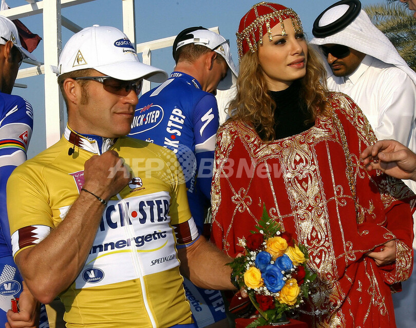 【ドーハ/カタール 28日 AFP】自転車レース、第6回ツアー・オブ・カタール(6th Tour of Qatar)、第1ステージ・チームタイムトライアル(ドーハ市内、6キロメートル)。クイックステップ・イネルゲティク(Quick Step-Innergetic)のステフェン・ドゥヨンフ(Steven de Jongh、オランダ)は、トップでフィニッシュして初日のステージ優勝を果たした。(c)AFP/FRANCK FIFE