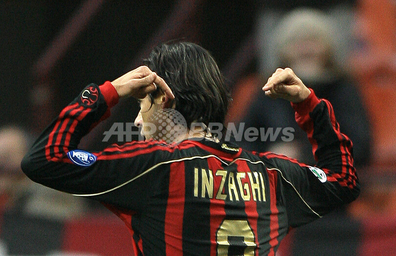 【ミラノ/イタリア 28日 AFP】サッカー、イタリア・セリエA・第21節、ACミラン(AC Milan)vsパルマ(Parma)。ACミランのフィリッポ・インザーギ(Filippo Inzaghi)は、後半31分に決勝点となるゴールを決めチームの勝利に貢献した。試合はACミランが1-0でパルマを降し、リーグ戦9勝目を挙げ勝ち点を27に伸ばした。写真は、得点を挙げ喜ぶインザーギ。(c)AFP/GIUSEPPE CACACE