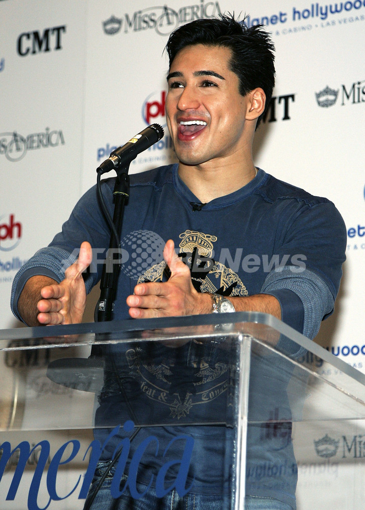 【ラスベガス/米国 29日 AFP】「ミス・アメリカ2007(Miss America 2007)」コンテストが29日、アラジン リゾート&カジノ(Aladdin Casino& Resort)で開催される。俳優マリオ・ロペス(Mario Lopez)の司会のもと、全米各州とヴァージン諸島、ワシントンD.C.を代表する52人が参加し、美しさを競い合うコンテストの模様は、カントリーミュージック専門チャンネルCMTで生放送される予定。写真は28日、会見を行なうマリオ・ロペス。(c)AFP/Getty Images Ethan Miller