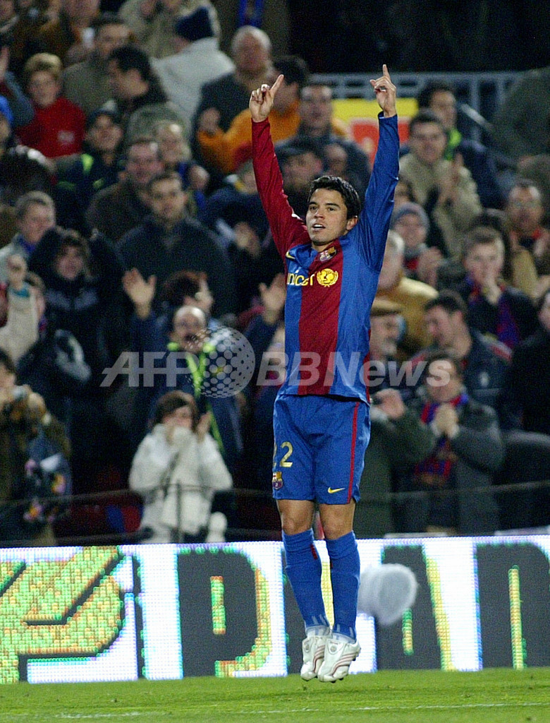 【バルセロナ/スペイン 28日 AFP】サッカー、スペイン・リーガエスパニョーラ1部・第20節、バルセロナ(Barcelona)vsセルタ(Celta)。バルセロナのハビエル・サビオラ(Javier Saviola)は、前半34分に先制ゴールを決めチームの勝利に貢献した。試合はバルセロナが3-1でセルタに快勝し、勝点を42に伸ばしリーグ首位をキープした。写真は、セルタのアンへル・ロペス(Angel Lope)の前でボールをコントロールするサビオラ(右)。(c)AFP/CESAR RANGEL