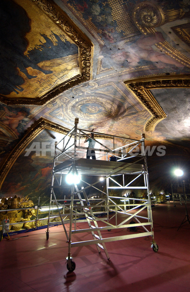 ニュース ライフ ベルサイユ宮殿「鏡の間」、間もなく修復工事が完了 - フランス 2007年1月29日 5:09 発信地:フランス [ ヨーロッパ フランス ] このニュースをシェア ‹ › ❮ 2/3 ❯ 写真は「鏡の間」の天井修復をする作業員(2004年7月7日撮影)。(c)AFP/ERIC FEFERBERG 画像作成中 ! 【ベルサイユ/フランス 29日 AFP】およそ3年の歳月をかけて行われていたベルサイユ宮殿「鏡の間」の修復工事は、2月に完了が見込まれており、同年5月には一般公開が再開される予定。写真は「鏡の間」の天井修復をする作業員(2004年7月7日撮影)。(c)AFP/ERIC FEFERBERG ライフ 一覧へ> メディア・報道関係・法人の方向け 写真・動画 購入のお問合せ>