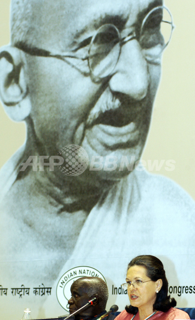 【ニューデリー/インド 29日 AFP】故マハトマ・ガンジー(Mahatma Gandhi)氏が率いた英国からの独立運動、「非暴力不服従運動(Satyagraha)」開始100周年を記念する2日間の国際会議がニューデリー(New Delhi)で開幕した。「21世紀の平和、非暴力、ガンジー哲学の発展」をテーマに掲げた会議の冒頭、国民会議派(Indian Congress Party)のソニア・ガンジー(Sonia Gandhi)総裁が演説に立ち、1947年に独立したインドは「過去数十年の間にめざましい進歩を遂げ、急速に変貌した」が、マハトマ・ガンジー氏の遺志に忠実にあろうとするならば、「すべての人の台頭」を保証しなければならないと語った。写真は29日、同国際会議で演説する国民会議派のガンジー総裁(右)と、ザンビアの初代大統領でノーベル文学賞受賞者のケネス・カウンダ(Kenneth Kaunda)氏(左)。(c)AFP