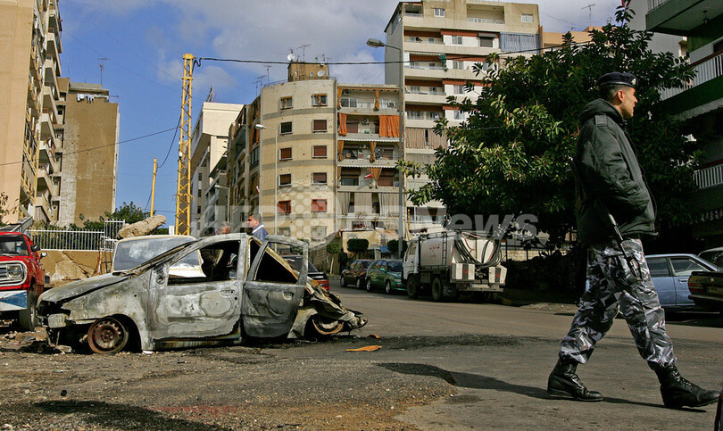【ベイルート/レバノン 30日 AFP】数日前に大規模な暴動が発生した首都ベイルート(Beirut)では29日、不安定ながら平穏な状態が戻っている。暴動は、ベイルート・アラブ大学(Beirut’s Arab University)のカフェテリアで、政府支持派と反政府派との間で発生し、イスラム教スンニ(Sunni)、シーア(Shiite)両宗派間の衝突に発展。その結果4人が死亡、152人が負傷している。イスラム教シーア派武装組織「ヒズボラ(Hezbollah)」の指導者、ハッサン・ナスララ(Hassan Nasrallah)師は「政府要人が宗派間の混乱を煽っている」と非難した。写真は同日、ベイルート市内の衝突発生時に炎上した車両と、現場を巡回する警察官。(c)AFP/MARWAN NAAMANI