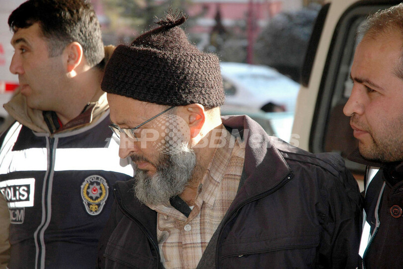 【コンヤ/トルコ 30日 AFP】警察当局は29日、5地方にまたがる同時多発テロに関与したとして、国際テロ組織アルカイダ(Al-Qaeda)の関係者とされる46人の身柄を拘束した。うち26人を中部コンヤ(Konya)で確保拘留、残りはイスタンブール(Istanbul)、コジャーエリー(Kocaeli)、および西部のイズミル(Izmir)、南東部マルディン(Mardin)で捕らえたという。写真は同日、拘束された容疑者の1人。(c)AFP/IHLAS NEWS AGENCY