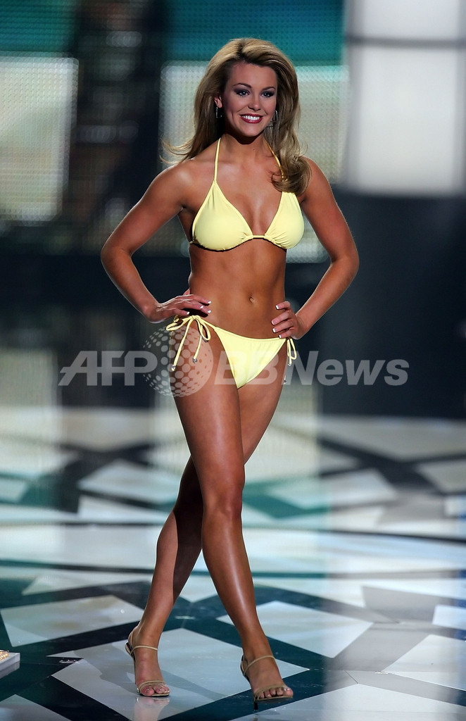 【ラスベガス/米国 30日 AFP】「ミス・アメリカ2007(Miss America 2007)」コンテストが29日、アラジン リゾート&カジノ(Aladdin Casino& Resort)で開催された。俳優マリオ・ロペス(Mario Lopez)の司会のもと、全米各州とヴァージン諸島、ワシントンD.C.を代表する52人が参加し、美しさを競い合うコンテストで見事優勝を決めたのはオクラホマ代表のローレン・ネルソンさん(Lauren Nelson)。写真は水着審査に登場したローレン・ネルソンさん。(c)AFP/Getty Images Ethan Miller