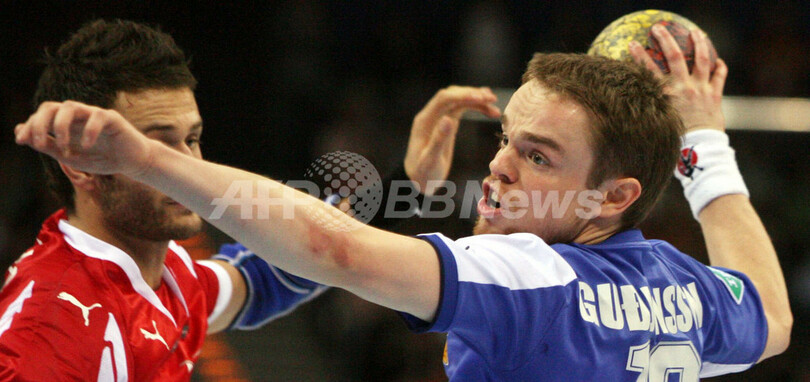 【ハンブルク/ドイツ 30日 AFP】ハンドボール、男子ハンドボール世界選手権2007(Men’s Handball World Championship)・準々決勝、アイスランドvsデンマーク。試合はデンマークが42-41でアイスランドとの接戦に勝利し準決勝進出を果たした。また、敗れたアイスランドは5-8位決定戦に回ることが決まった。写真は、チームメイトと共に勝利を喜ぶデンマークのHans Lindberg(左)。(c)AFP/ATTILA KISBENEDEK