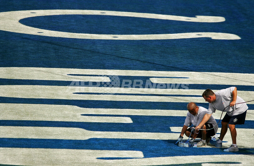 【マイアミ/米国 30日 AFP】NFL、第41回スーパーボウル(Super Bowl XLI)が2月4日に行われるドルフィン・スタジアム(Dolphin Stadium)でメディアデーが開催され、インディアナポリス・コルツ(Indianapolis Colts)とシカゴ・ベアーズ(Chicago Bears)の選手は、会場に駆けつけた数千の記者からの取材に応じた。(c)AFP/Getty Images Roberto Schmidt