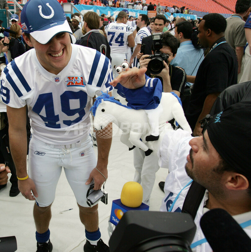 【マイアミ/米国 30日 AFP】NFL、第41回スーパーボウル(Super Bowl XLI)が2月4日に行われるドルフィン・スタジアム(Dolphin Stadium)でメディアデーが開催され、インディアナポリス・コルツ(Indianapolis Colts)とシカゴ・ベアーズ(Chicago Bears)の選手は、会場に駆けつけた数千の記者からの取材に応じた。(c)AFP/Getty Images Roberto Schmidt