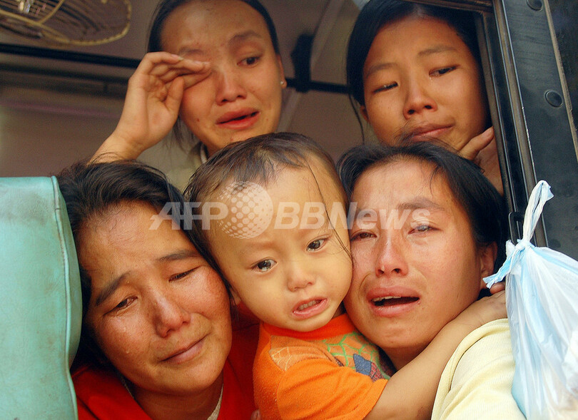 【ノーンカーイ/タイ 31日 AFP】当局によると、収容されているラオスの山岳少数民族モン族の難民152人の強制送還が延期された。国際連合難民高等弁務官事務所(UNHCR)によると、収容所内でモン族の難民数十人がバリケードを築き、本国への強制送還計画に抗議した。緊張したにらみ合いの末、当局は送還の延期を決定した。写真はラオス国境に接するタイ北東部ノーンカーイ(Kong Khai)県の移民収容センターで30日、止められたバスの中で泣くモン族の難民たち。(c)AFP/Mathias DEPARDON