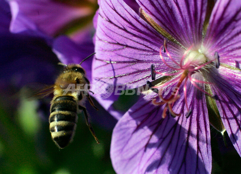 写真はみつを集めに来たハチ(撮影日不明)。(c)AFP