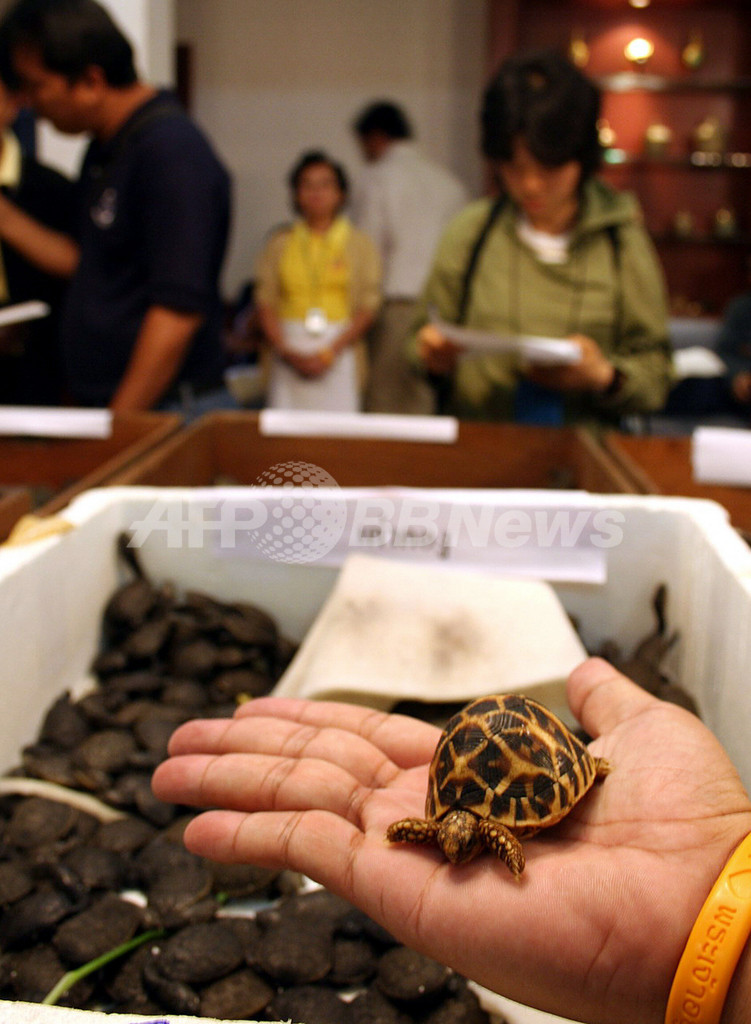 ニュース 社会 スーツケースから絶滅危惧種のカメ1400匹 - タイ 2007年2月1日 14:28 発信地:タイ [ アジア・オセアニア タイ ] このニュースをシェア ‹ › ❮ 3/3 ❯ 写真は31日、カメを手のひらに乗せる税関職員。(c)AFP / HO/Thai Customs Department 画像作成中 ! 【バンコク/タイ 1日 AFP】タイ税関当局は31日、絶滅危惧種に指定されているカメ1400匹を押収した。カメは手のひらサイズの小型種で、スーツケースに生きたまま詰め込まれていた。バンコク(Bangkok)のペット市場で不法に売買しようとしたものとみられる。写真は31日、税関で発見されたカメ。(c)AFP / HO/Thai Customs Department 社会 一覧へ> メディア・報道関係・法人の方向け 写真・動画 購入のお問合せ>