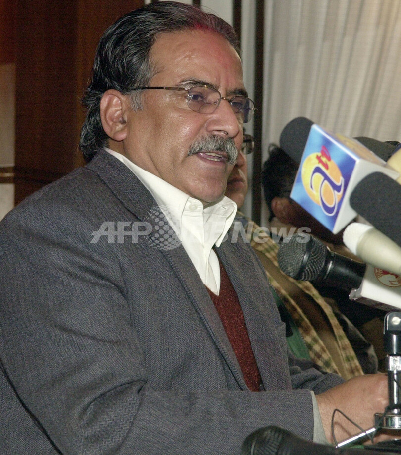 【カトマンズ/ネパール 1日 AFP】ネパール共産党毛沢東主義派(Maoist)プスパ・カマル・ダハル(Pushpa Kamal Dahal)書記長(別名プラチャンダ)は1日、カトマンズ(Kathmandu)で記者会見し、7党で構成する連立政府が制憲議会選挙を6月半ばまでに実施しない場合、抗議活動を行うと警告した。連立政府と毛派は前年末、和平協定に調印。その後、国連(UN)監視下で毛派の武装解除が始まっている。写真は同日、記者会見するダハル書記長(左)。(c)AFP/DEVENDRA M SINGH