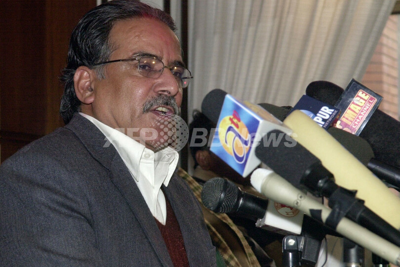 【カトマンズ/ネパール 1日 AFP】ネパール共産党毛沢東主義派(Maoist)プスパ・カマル・ダハル(Pushpa Kamal Dahal)書記長(別名プラチャンダ)は1日、カトマンズ(Kathmandu)で記者会見し、7党で構成する連立政府が制憲議会選挙を6月半ばまでに実施しない場合、抗議活動を行うと警告した。連立政府と毛派は前年末、和平協定に調印。その後、国連(UN)監視下で毛派の武装解除が始まっている。写真は同日、記者会見するダハル書記長(左)。(c)AFP/DEVENDRA M SINGH