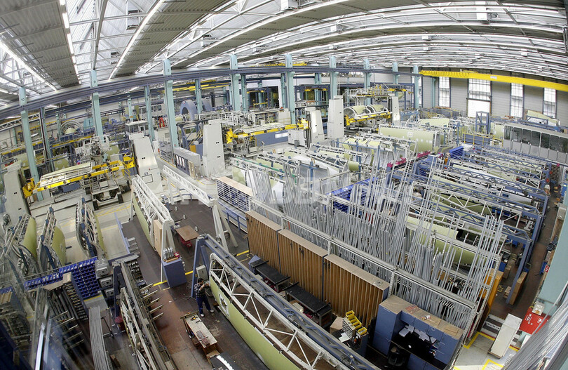 【アウクスブルク/ドイツ 2日 AFP】国防省は1日、航空防衛機器大手の欧州航空防衛宇宙会社(EADS)、ノースロップグラマン(Northrop Grumman)両社が共同開発した無人航空機(UAV)「ユーロホーク(Euro Hawk)」の購入計画を発表した。購入総額は4億3000万ユーロ(約676億円)。写真は同日、南部アウクスブルク(Augsburg)にあるEADSの組み立て工場。(c)AFP/DDP/JOERG KOCH