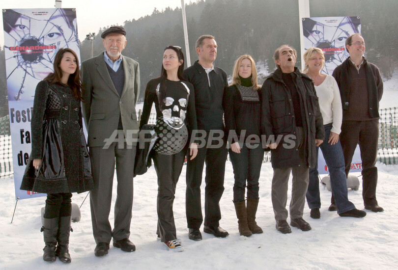 【ジェラルメ/フランス 2日 AFP】第14回ジェラルメ国際ファンタスティカ映画祭(Fantastic’Arts Gerardmer festival du film fantastique a Gerardmer)が1月31日から2月4日まで開催される。同映画祭ではファンタジー、SF、ホラーの長編映画を中心に、国内のショートフィルムなども上映される。写真は審査員たち。(左から)歌手のエミリー・シモン(Emilie Simon)、米映画監督のアーヴィン・カーシュナー(Irvin Kershner)、女優のジュリー・ドレフュス(Julie Dreyfus)、作家のグレアム・ジョイス(Graham Joyce)、俳優のレア・ドリュッケール(Lea Drucker)、俳優のリシャール・ボーランジェ(Richard Bohringer)、女優のシャルロット・ド・テュルケーム(Charlotte de Turckheim)、ベルギー人映画監督のピエール・ポール・ランデル(Pierre-Paul Renders)。(c)AFP/JEAN-CHRISTOPHE VERHAEGEN