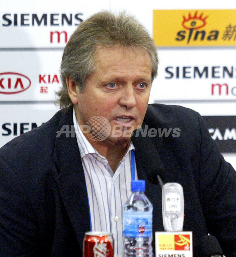 【カメルーン 1日 AFP】サッカー、元中国代表監督で現在カメルーン代表監督のアリー・ハーン(Arie Haan)氏が、辞任することが明らかになったと1日、カメルーンの日刊紙である「カメルーン・トリビューン(Cameroon Tribune)」が伝えた。同紙によるとハーン氏は「カメルーン代表との関係を終わらせる決断をし、カメルーンサッカー連盟に(その旨を伝える)メールを送った。」と語っている。ハーン氏は2006年8月にカメルーン代表監督として2年契約を結んでいたが、無断で2ヶ月間留守にするなど関係はよくなかった。写真は、記者会見に臨むハーン氏(2004年11月17日撮影)。(c)AFP/Laurent FIEVET