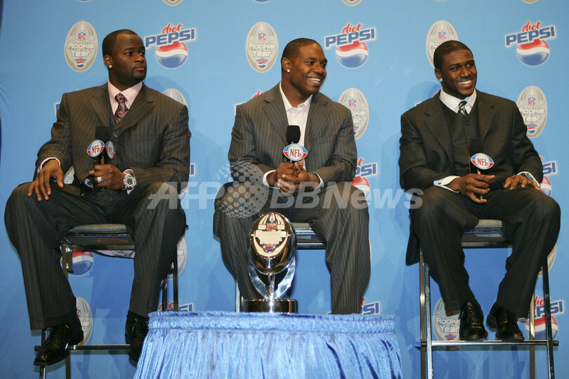 【マイアミ/米国 1日 AFP】NFLは1日、今季の攻撃新人王にテネシー・タイタンズ(Tennessee Titans)のQBヴィンス・ヤング(Vince Young)が選出された事を発表した。ヤングは開幕3連敗を喫したチームを立て直す為に第4週から先発メンバー入りを果たすなど15試合に出場し、パス357本中184本成功を成功させて2199ヤードを獲得する活躍を見せ、チームの成績を8勝8敗まで立ち直らせる立役者となった。写真は、トロフィーを手に会見へ出席したヤング。(c)AFP/Getty Images Scott Boehm