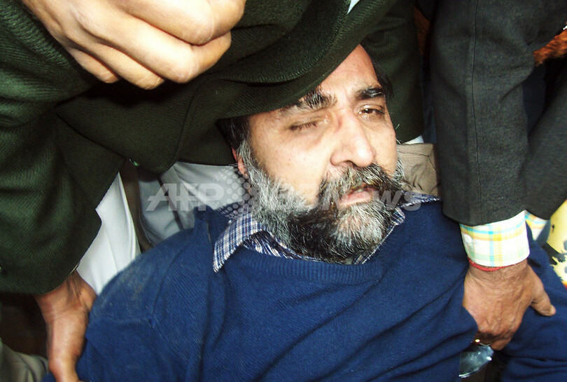 写真は、ガジアバード(Ghaziabad)の裁判所前で抱きかかえられるPandher容疑者。(c)AFP