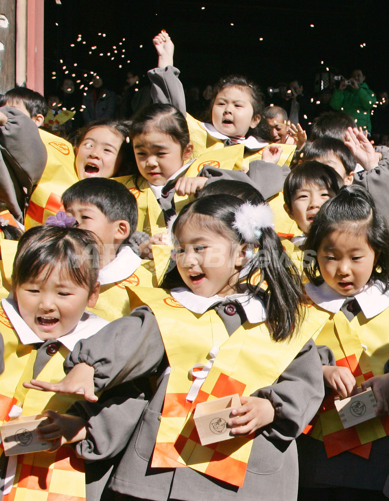 ニュース ライフ 浅草寺で園児たちが豆まき - 東京 2007年2月3日 13:31 発信地:東京 [ アジア・オセアニア 東京 ] このニュースをシェア ‹ › ❮ 5/5 ❯ 写真は一斉に豆をまく園児たち。(c)AFP/Yoshikazu TSUNO 画像作成中 ! 【東京 3日 AFP】台東区にある浅草寺で3日、毎年恒例の節分会が行なわれた。集まった約400人の園児たちは、お面をかぶった鬼が登場すると、災厄の退散、福の到来を願って元気よく豆をまいた。写真は一斉に豆をまく園児たち。(c)AFP/Yoshikazu TSUNO ライフ 一覧へ> メディア・報道関係・法人の方向け 写真・動画 購入のお問合せ>