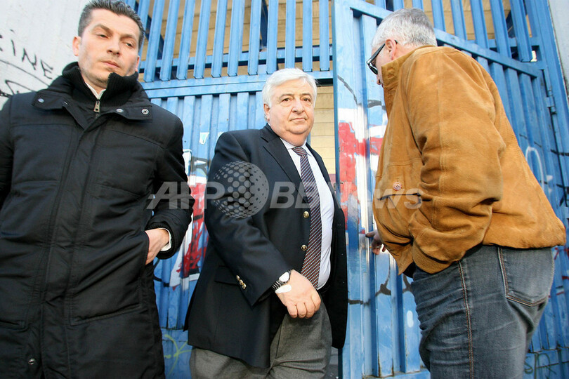 写真は、カターニアの本拠地スタディオ・アンジェロ・マッシミーノから出てきたカターニアの警察署長(中央)。(c)AFP/Marcello PATERNOSTRO