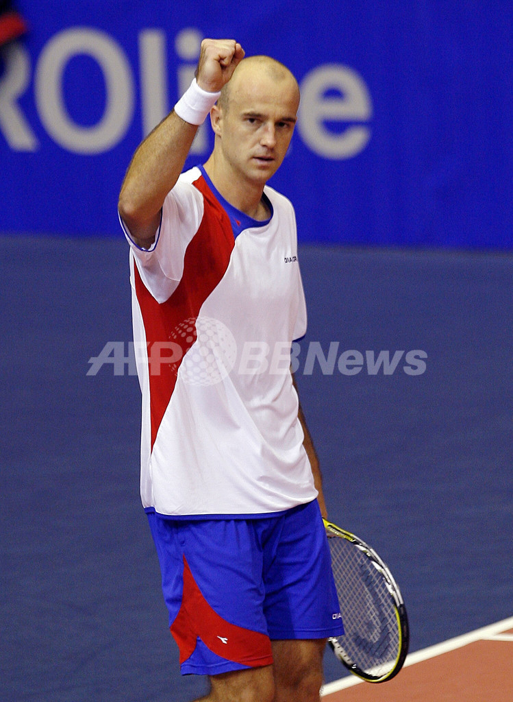 【ザグレブ/クロアチア 3日 AFP】男子テニス、ザグレブ・インドア・トーナメント(PBZ Zagreb Indoors ATP tennis tournament)、シングルス準決勝。大会第1シードのイバン・リュビチッチ(Ivan Ljubicic、クロアチア)は、ロシアのミハイル・ユーズニー(Mikhail Youzhny)と対戦。リュビチッチはセットカウント2-1(2-6、6-3、7-5)でユーズニーに競り勝ち、決勝進出を果たした。(c)AFP/HRVOJE POLAN