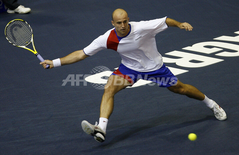 【ザグレブ/クロアチア 3日 AFP】男子テニス、ザグレブ・インドア・トーナメント(PBZ Zagreb Indoors ATP tennis tournament)、シングルス準決勝。大会第1シードのイバン・リュビチッチ(Ivan Ljubicic、クロアチア)は、ロシアのミハイル・ユーズニー(Mikhail Youzhny)と対戦。リュビチッチはセットカウント2-1(2-6、6-3、7-5)でユーズニーに競り勝ち、決勝進出を果たした。(c)AFP/HRVOJE POLAN