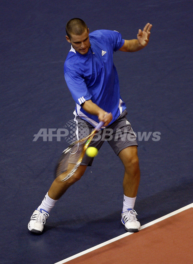 【ザグレブ/クロアチア 3日 AFP】男子テニス、ザグレブ・インドア・トーナメント(PBZ Zagreb Indoors ATP tennis tournament)、シングルス準決勝。大会第1シードのイバン・リュビチッチ(Ivan Ljubicic、クロアチア)は、ロシアのミハイル・ユーズニー(Mikhail Youzhny)と対戦。リュビチッチはセットカウント2-1(2-6、6-3、7-5)でユーズニーに競り勝ち、決勝進出を果たした。(c)AFP/HRVOJE POLAN
