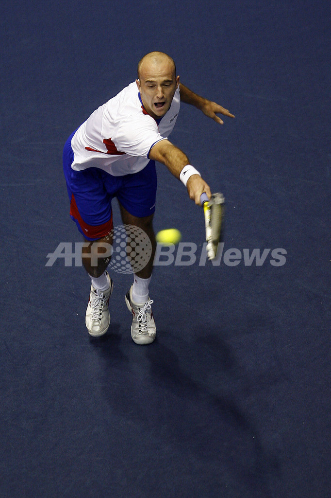 【ザグレブ/クロアチア 3日 AFP】男子テニス、ザグレブ・インドア・トーナメント(PBZ Zagreb Indoors ATP tennis tournament)、シングルス準決勝。大会第1シードのイバン・リュビチッチ(Ivan Ljubicic、クロアチア)は、ロシアのミハイル・ユーズニー(Mikhail Youzhny)と対戦。リュビチッチはセットカウント2-1(2-6、6-3、7-5)でユーズニーに競り勝ち、決勝進出を果たした。(c)AFP/HRVOJE POLAN