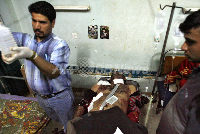 写真はバグダッドのサドルシティーで同日、負傷者の治療にあたる救急隊員。(c)AFP/AHMAD AL-RUBAYE