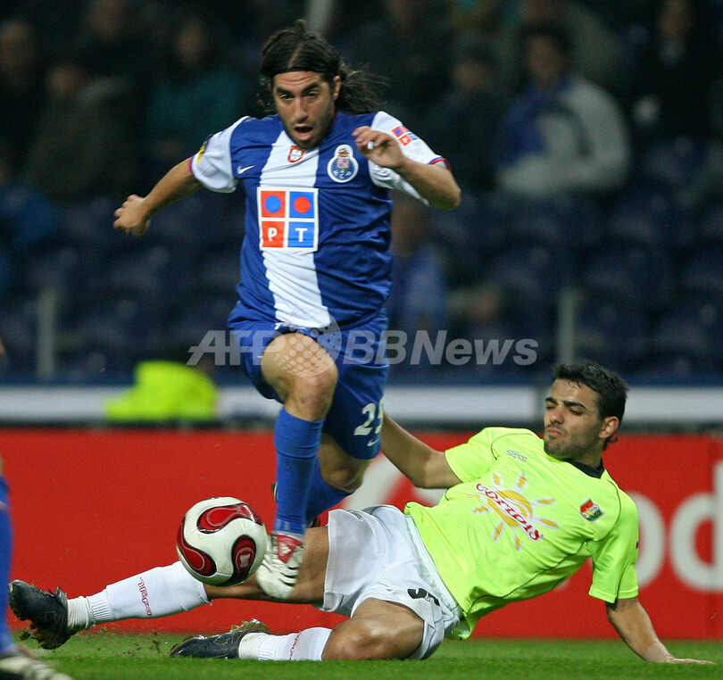 【ポルト/ポルトガル 3日 AFP】サッカー、ポルトガル・スーペルリーガ・第17節、FCポルト(FC Porto)vsエストレラ・ダ・アマドーラ(Estrela Amadora)。試合は後半ロスタイムにアンセルモ(Anselmo)が決勝のゴールを決め、アマドーラが0-1でポルトを降し、リーグ5勝目を挙げ勝ち点を20に伸ばした。写真は、決勝ゴールを決めチームメートに祝福されるアンセルモ(中央)。(c)AFP/NICOLAS ASFOURI