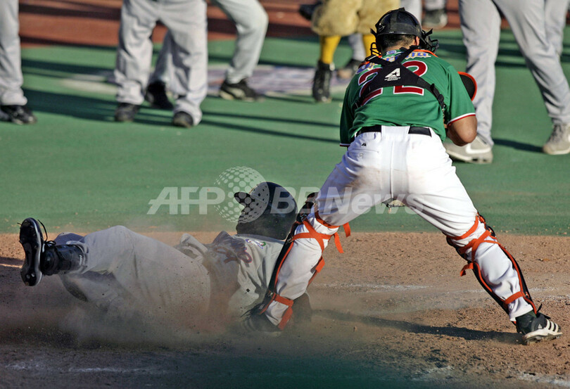 スポーツ 野球 <野球 カリビアンシリーズ07>ドミニカ メキシコを完封で降し開幕2連勝 - プエルトリコ 2007年2月4日 8:52 発信地:プエルトリコ [ 中南米 プエルトリコ ] このニュースをシェア ‹ › ❮ 7/7 ❯ 写真は、ホームに滑り込むドミニカのトニー・バティスタ(左)。(c)AFP/JUAN BARRETO 画像作成中 ! 【カロリーナ/プエルトリコ 3日 AFP】野球、カリビアンシリーズ(Caribbean Series)、ドミニカvsメキシコ。ドミニカのミゲル・テハダ(Miguel Tejada)は、3打数1安打1打点でチームに貢献した。試合は、ドミニカが9-0でメキシコを降し開幕2連勝を飾った。写真は、3回表に先制のタイムリーヒットを打つテハダ。(c)AFP/JUAN BARRETO 野球 一覧へ> メディア・報道関係・法人の方向け 写真・動画 購入のお問合せ>