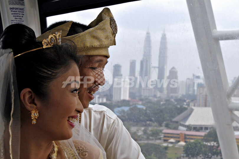 ニュース ライフ マレーシア観光年、大観覧車に乗る新婚カップル - マレーシア 2007年2月4日 19:32 発信地:マレーシア [ アジア・オセアニア マレーシア ] このニュースをシェア ‹ › ❮ 3/3 ❯ 写真は、観覧車に乗る新婚カップル。(c)AFP/TENGKU BAHAR 画像作成中 ! 【クアラルンプール/マレーシア 4日 AFP】「マレーシア観光年2007(Visit Malaysia Year 2007)」に合わせて首都クアラルンプール(Kuala Lumpur)に設置された観覧車「アイ・オン・マレーシア(Eye on Malaysia)」に4日、新婚カップルが結婚式の衣装で乗り込み、景色を楽しんだ。写真は、観覧車の前でキスをする新婚カップル。(c)AFP/TENGKU BAHAR ライフ 一覧へ> メディア・報道関係・法人の方向け 写真・動画 購入のお問合せ>